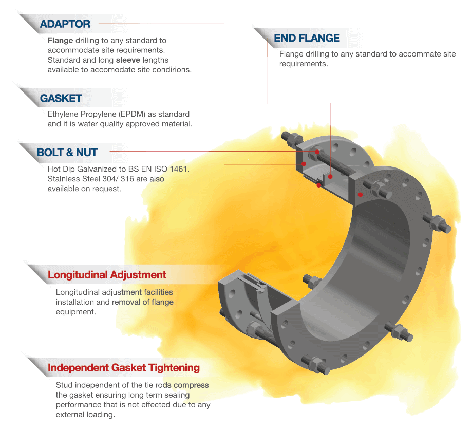 Synchong Hoe(SCHE) fabricated Dismantling Joints, engineered for easy installation and disassembly of flanged pipework and fittings, including valves, meters, and pumps. Our Dismantling Joints provide seamless integration with flanged equipment, facilitating efficient maintenance and repairs. Additionally, these fittings allow for axial displacement of pipework during construction, ensuring flexibility and adaptability in various applications.